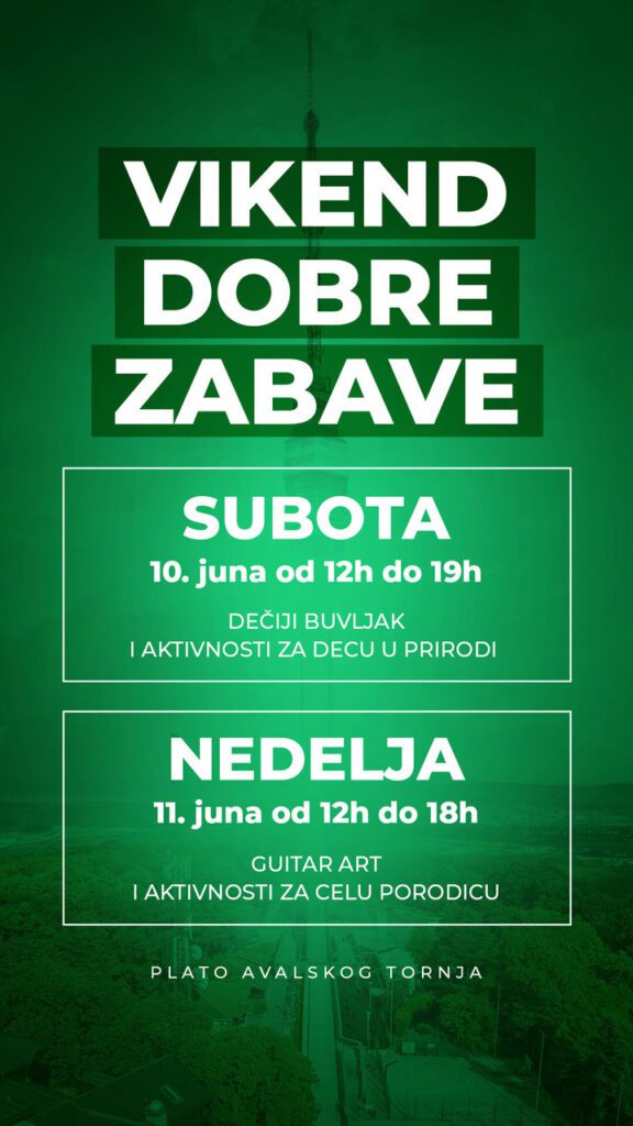 Pred nama je vikend dobre porodične zabave na platou ispod Avalskog tornja!